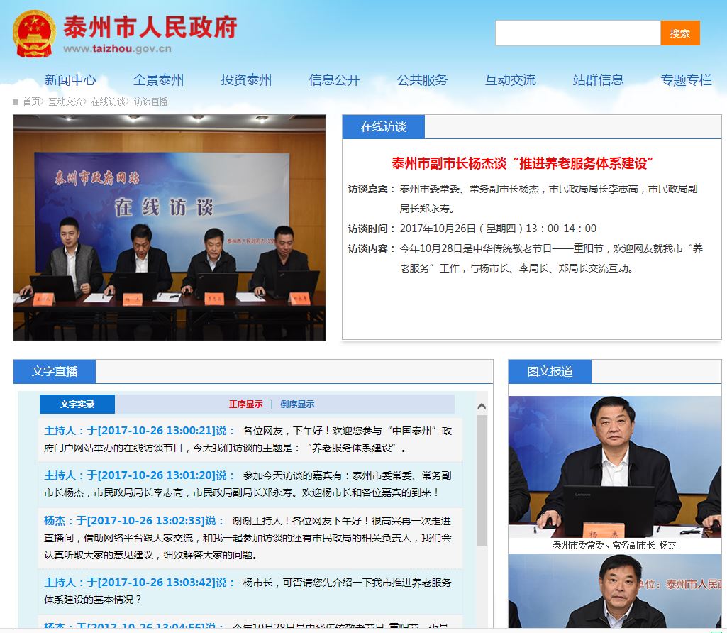2017年共在市政府网站上举办两次在线访谈,两次在线调查。