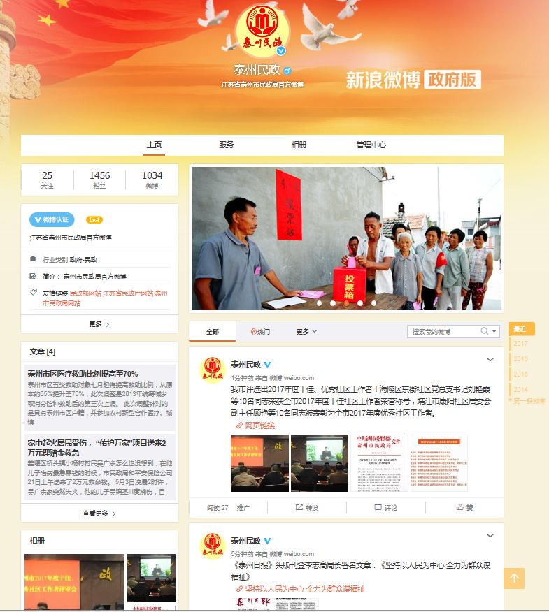 充分利用微博、微信公众号等自媒体平台向社会公众深入介绍民政工作的各项业务职能,发布民政工作的最新动态,宣传民政工作的最新政策。