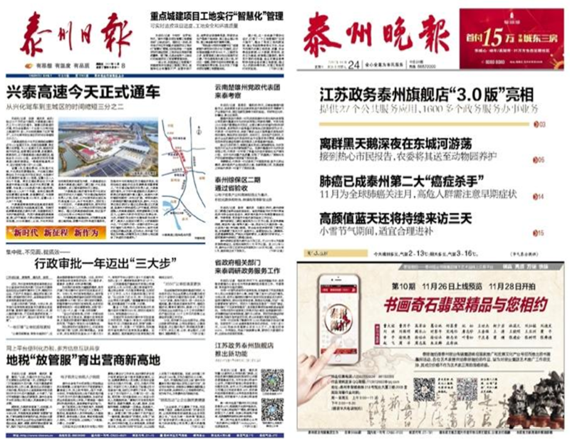 (三)推进"互联网+政务服务"。围绕政务服务"一张网"建设目标,建立工作机制,扎实推进项目进度,泰州市级、泰兴和高港县级旗舰店均在全省首批上线。建成全市统一的网上预受理平台和政务服务管理平台,完成实名认证、电子证照、公共支付等对接工作,实现政务服务事项线上线下一体化办理。围绕群众对社保、公积金、公交线路查询等高频服务需求,打造泰州政府公共服务平台,整合20家部门31个公共服务应用,实现在PC端、APP端、微信端同步开展服务。加大"互联网+政务服务"创新突破,大数据O2O审图云平台、"店小二"式全程帮办代办服务获评江苏2017年度政务服务改革创新成果。
