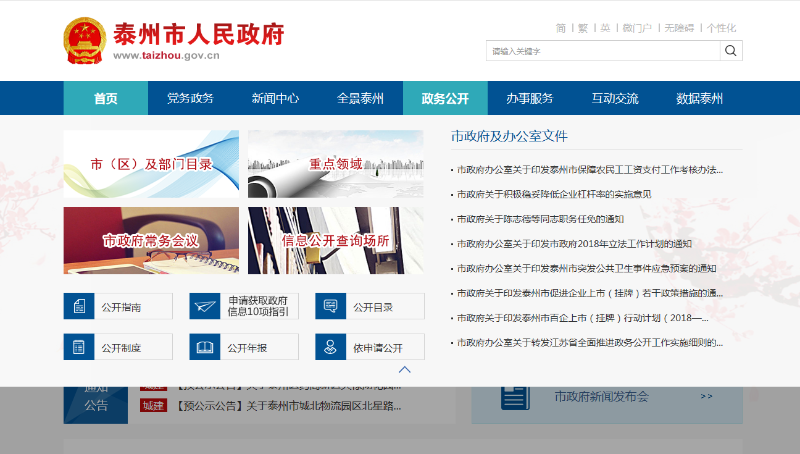 政府门户网站。充分发挥信息公开第一平台的重要作用,集约化改版市政府门户网站,统筹、整合政府主网站和部门子网站信息公开内容,建成全市统一的政府门户网站群和微门户站群,公开信息同比增长15.71%。
