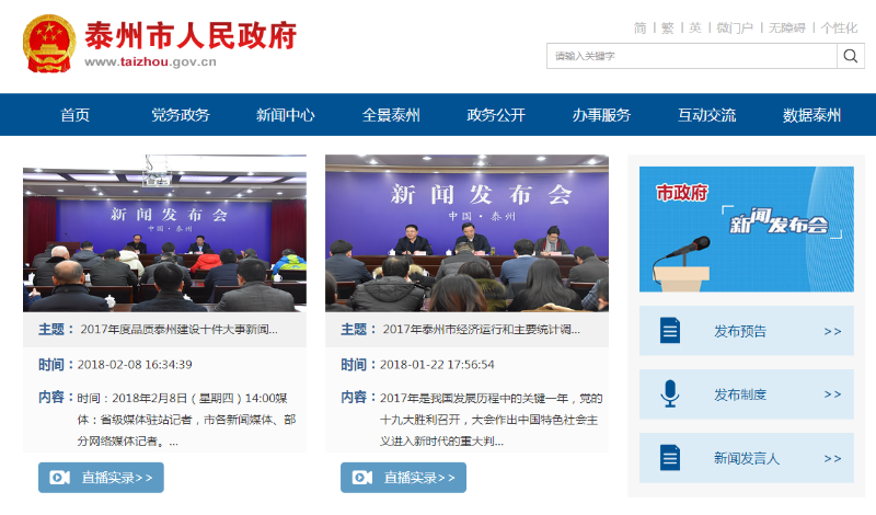 新闻发布会。坚持常态化组织新闻发布会,全市召开新闻发布会110场,对创新发展"1+4"政策、危化品企业安全生产管理、老年人口信息和老龄事业发展状况等开展权威发布和解读。在政府门户网站开设专题,图文全景、直播实录新闻发布会实况。
