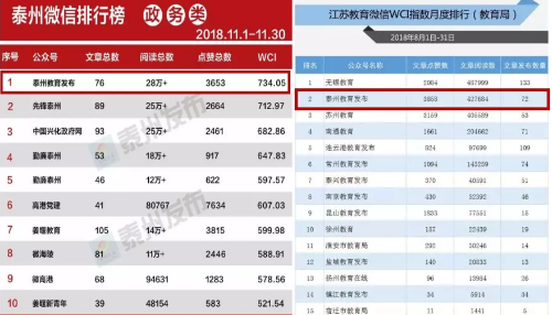 2.加强与新闻媒体的联动。及时举办新闻发布会、记者通气会,组织主题集中采访活动,利用泰州日报、泰州晚报、泰州电视台等新闻媒体,就学区划分、中考中招、高考高招、幼儿园招生、教师招聘、家庭经济困难学生资助、等教育热点问题发布权威信息。围绕泰州教育特色工作,创新开辟泰州日报“泰州教育”专版。截至年底,已组织专版宣传46期;定期组织开展系列推广活动,丰富发布内容,着力提升泰州教育发布的社会影响力。已累计推送微信400余条,其中原创180多条,其中浏览量8W+1条,7W+1条,5W+3条,7W+6条。全市政务新媒体排行榜上稳居前三,在全省地级市教育局新媒体排行中稳居前三。