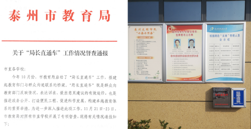 1.今年10月份,市教育局启动了“局长直通车”工作,搭建起教育与群众沟通联系的桥梁。“局长直通车”既是群众向教育部门反映情况、表达诉求、提出意见建议的有效途径,也是推进政务公开、打造便民工程、促进科学发展、构建卓越教育体系的重要举措。市直各学校高度重视,通过强化组织保障、加强宣传发动、配套相关举措,有序有力推进“局长直通车”工作。为进一步深入推进此项工作,11月份市教育局对所有市直学校开展了专项督查,对督查过程中发现的问题与工作情况进行通报,营造了良好的教育生态和环境。