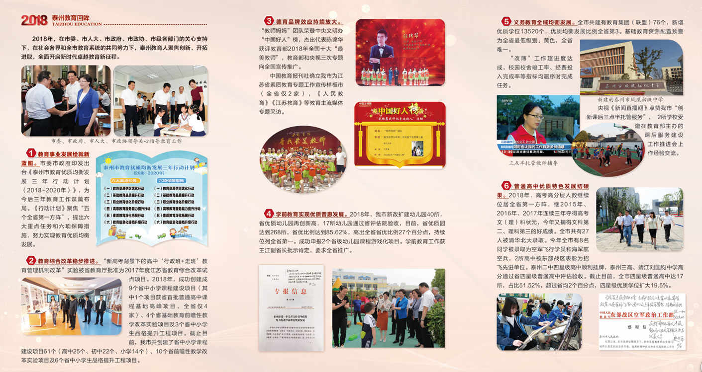 2.加强与新闻媒体的联动。及时举办新闻发布会、记者通气会,组织主题集中采访活动,利用泰州日报、泰州晚报、泰州电视台等新闻媒体,就学区划分、中考中招、高考高招、幼儿园招生、教师招聘、家庭经济困难学生资助、等教育热点问题发布权威信息。围绕泰州教育特色工作,创新开辟泰州日报“泰州教育”专版。截至年底,已组织专版宣传46期;定期组织开展系列推广活动,丰富发布内容,着力提升泰州教育发布的社会影响力。已累计推送微信400余条,其中原创180多条,其中浏览量8W+1条,7W+1条,5W+3条,7W+6条。全市政务新媒体排行榜上稳居前三,在全省地级市教育局新媒体排行中稳居前三。