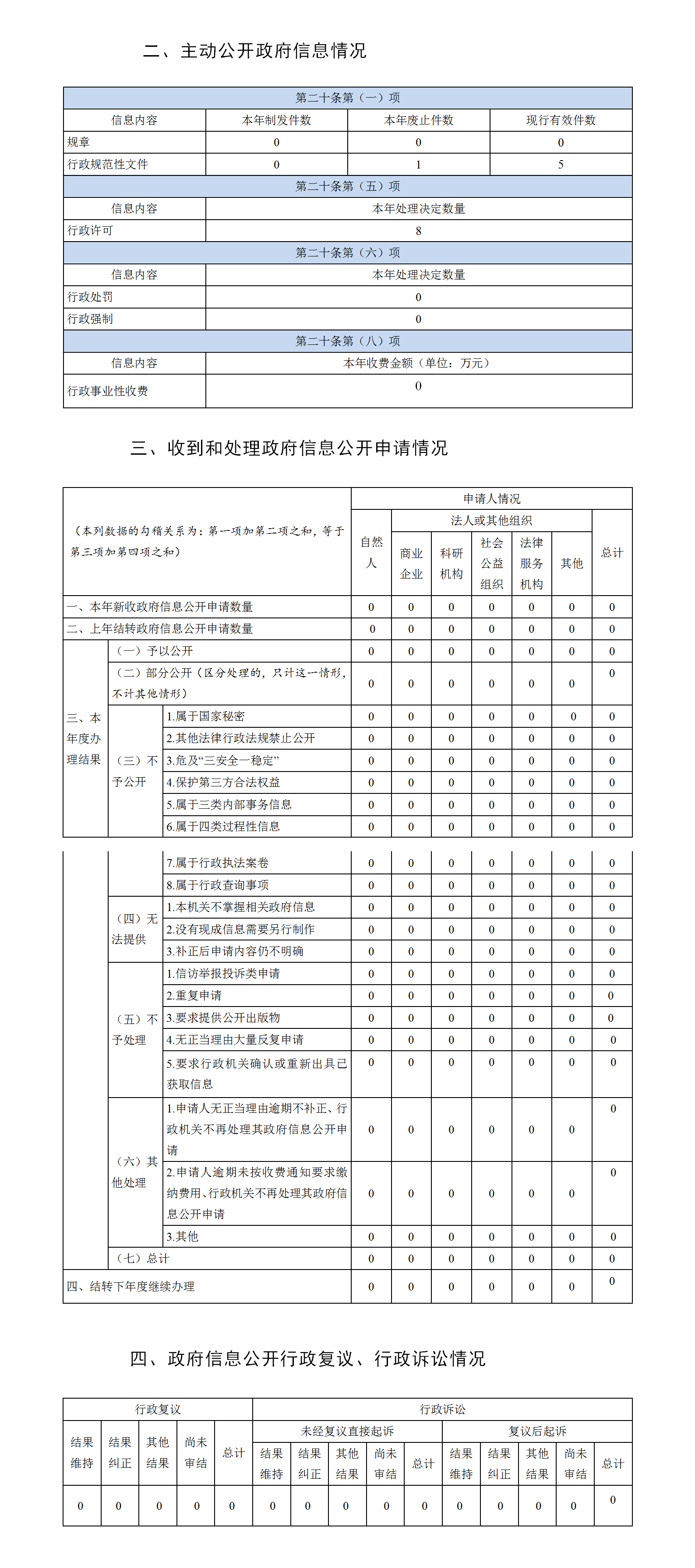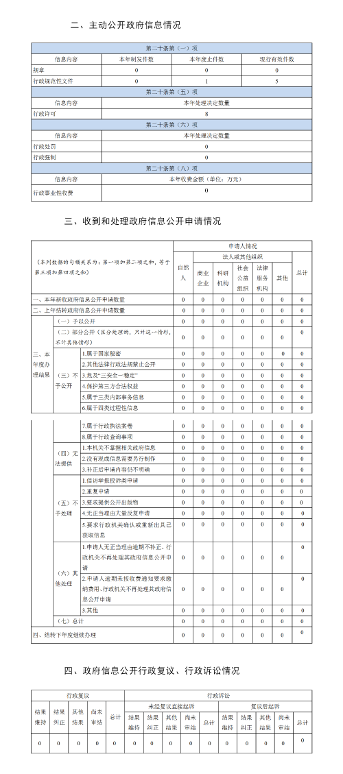 (二)全面做好主动公开工作。2022年度,我局门户网站以《泰州市民宗局2022年工作要点》为主线,围绕推动民族工作创品牌、宗教工作促和谐,及时主动向社会公开民宗政务动态891条。在网站首页显要位置链接“江苏政务服务”网,公布在线办理政务服务事项 29 项。按要求及时公开部门预决算信息,按时发布法治政府建设年度报告、政府信息公开工作年度报告。全年主动公开政策性文件11件。本年度收到政府信息公开申请0件。