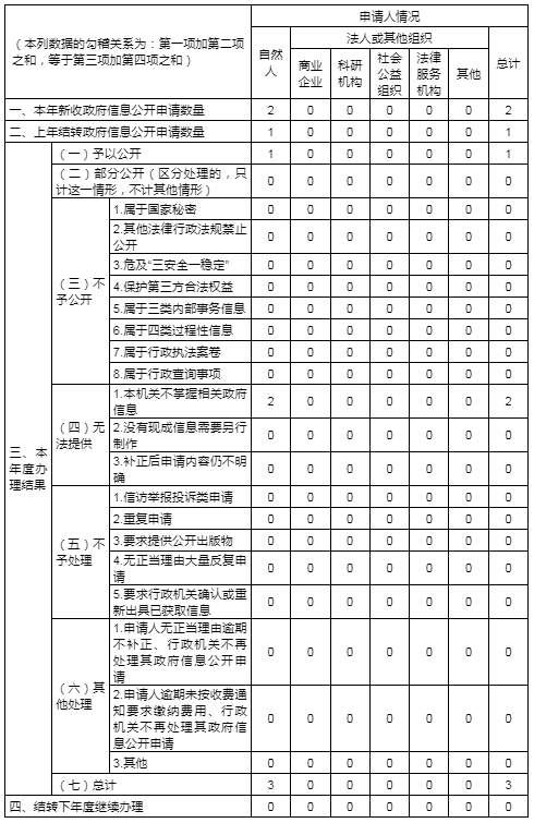 三、收到和处理政府信息公开申请情况